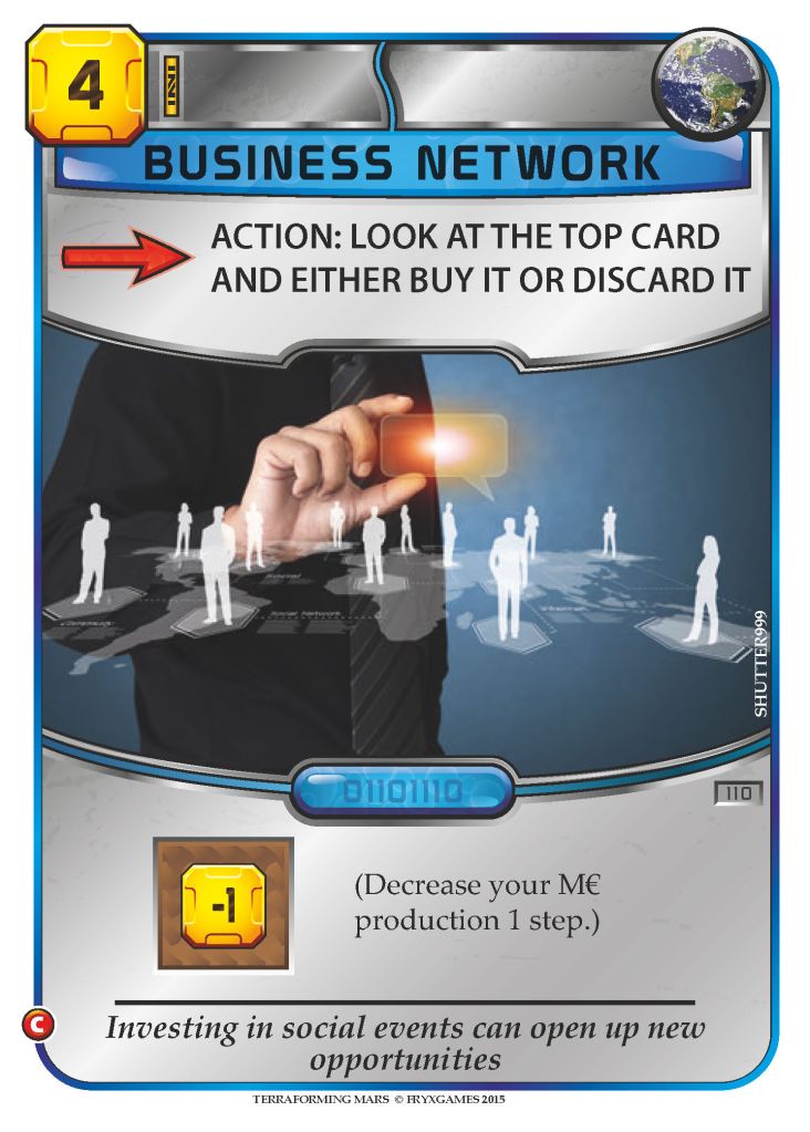 TM puts players in the roles of CEOs running organizations developing projects to make Mars habitable for humanity. This is not the job of a smuggler hiding from bandits in an asteroid field or a valiant captain fending off an alien invasion. CEOs go into battle with PowerPoint, not plasma rifles.